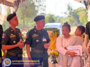 - ខេត្តត្បូងឃ្មុំ ៖ ដោយអនុវត្តតាមអនុសាសន៍ដឹកនាំដ៏ខ្ពង់ខ្ពស់របស់ ឯកឧត្ដម នាយឧត្តមសេនីយ៍ ស ថេត អគ្គស្នងការនគរបាលជាតិ និងការចង្អុលដឹកនាំផ្ទាល់ពីលោកឧត្តមសេនីយ៍ទោ ចិន នី ស្នងការនគរបាលខេត្ត នៅថ្ងៃអង្គារ ទី២៧ ខែមករា ឆ្នាំ២០២៦ លោកវរសេនីយ៍ឯក ឆោ វណ្ណា ស្នងការរងទទួលជំនួយការដឹកនាំ វរសេនាតូចនគរបាលការពារព្រំដែនគោកលេខ ៦១៧ បានចូលរួមគោរពវិញ្ញាណក្ខន្ធ បំពាក់ឋានន្តរស័ក្តិថ្នាក់វរសេនីយ៍ត្រី ជាកិច្ចបច្ឆាមរណ: និងបាននាំយកថវិកាសមាគមមិត្តនគរបាលជាតិកម្ពុជា ចំនួន ៦,០០០,០០០ រៀល និងបច្ច័យចូលរួមបុណ្យសព ចំនួន ៣,៦៧០,០០០ រៀល ដែលបានមកពីការកៀរគររបស់លោកឧត្តមសេនីយ៍ស្នងការ ប្រគល់ជូនលោកស្រី ភួន សុភ័ក្រ្ត ត្រូវជាភរិយាសពលោកអនុសេនីយ៍ឯក សុឹម ប៊ុនទី នាយរងប៉ុស្ដិ៍នគរបាលការពារព្រំដែនបឹងជ្រោង នៃវរសេនាតូចនគរបាលការពារព្រំដែនគោកលេខ ៦១៧ ដែលបានទទួលមរណភាព កាលពីថ្ងៃទី២៦ ខែមករា ឆ្នាំ២០២៦ ដោយជំងឺគាំងបេះដូង នៅគេហដ្ឋានសពស្ថិតនៅភូមិដំណាក់ល្អិត ឃុំរការគយ ស្រុកកងមាស ខេត្តកំពង់ចាម